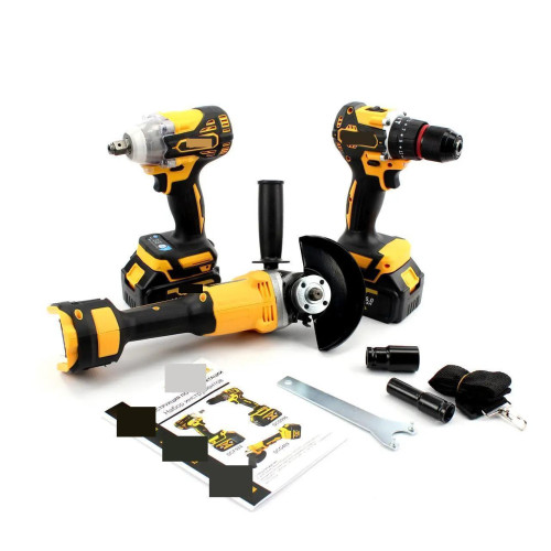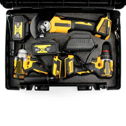 - Шуруповерт, болгарка та гайковерт у одному комплекті для широкого спектра завдань. Ідеально підходить для роботи з різними матеріалами та у різних умовах.