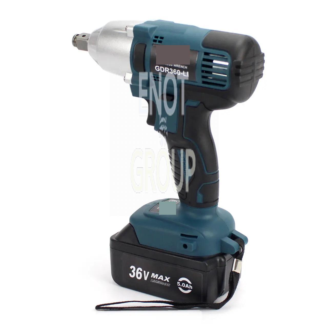 - Гайковерт GDR360-LI: Потужність 36 В, крутний момент до 200 Нм для надійного затягування гайок і болтів.