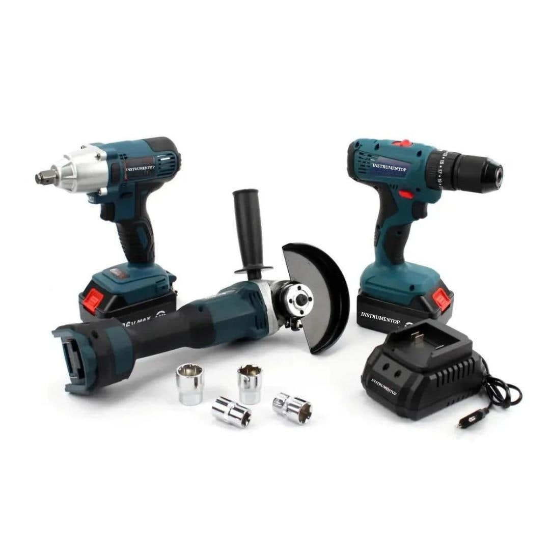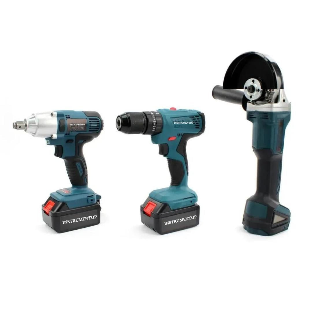 Комплект акумуляторних інструментів Instrumentop 36V 3в1 дриль, болгарка та шуруповерт у кейсі з 2 акумуляторами, професійний набір для дому та майстерні