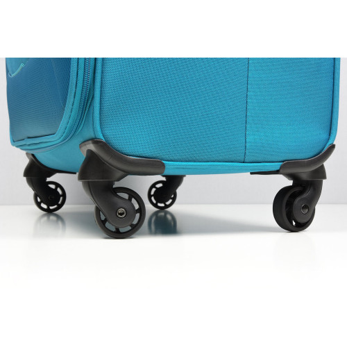 Модель оснащена 4 маневреними колесами, що обертаються на 360°, завдяки чому чемодани легко пересуваються по будь-якій поверхні. Телескопічна алюмінієва ручка з фіксацією в кількох положеннях робить перевезення максимально зручним, а бічні та верхні ручки допомагають легко піднімати валізи.