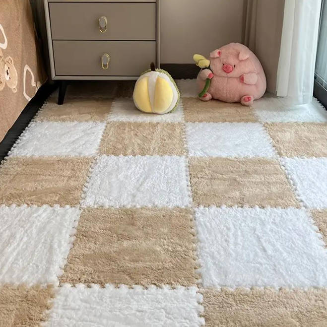 Комплект плюшевих килимків-пазлів 30×30 см, бежево-білий, 10 шт.