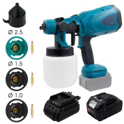 - Бездротова свобода: Акумуляторне живлення забезпечує зручність і мобільність при фарбуванні важкодоступних місць або великих площ.