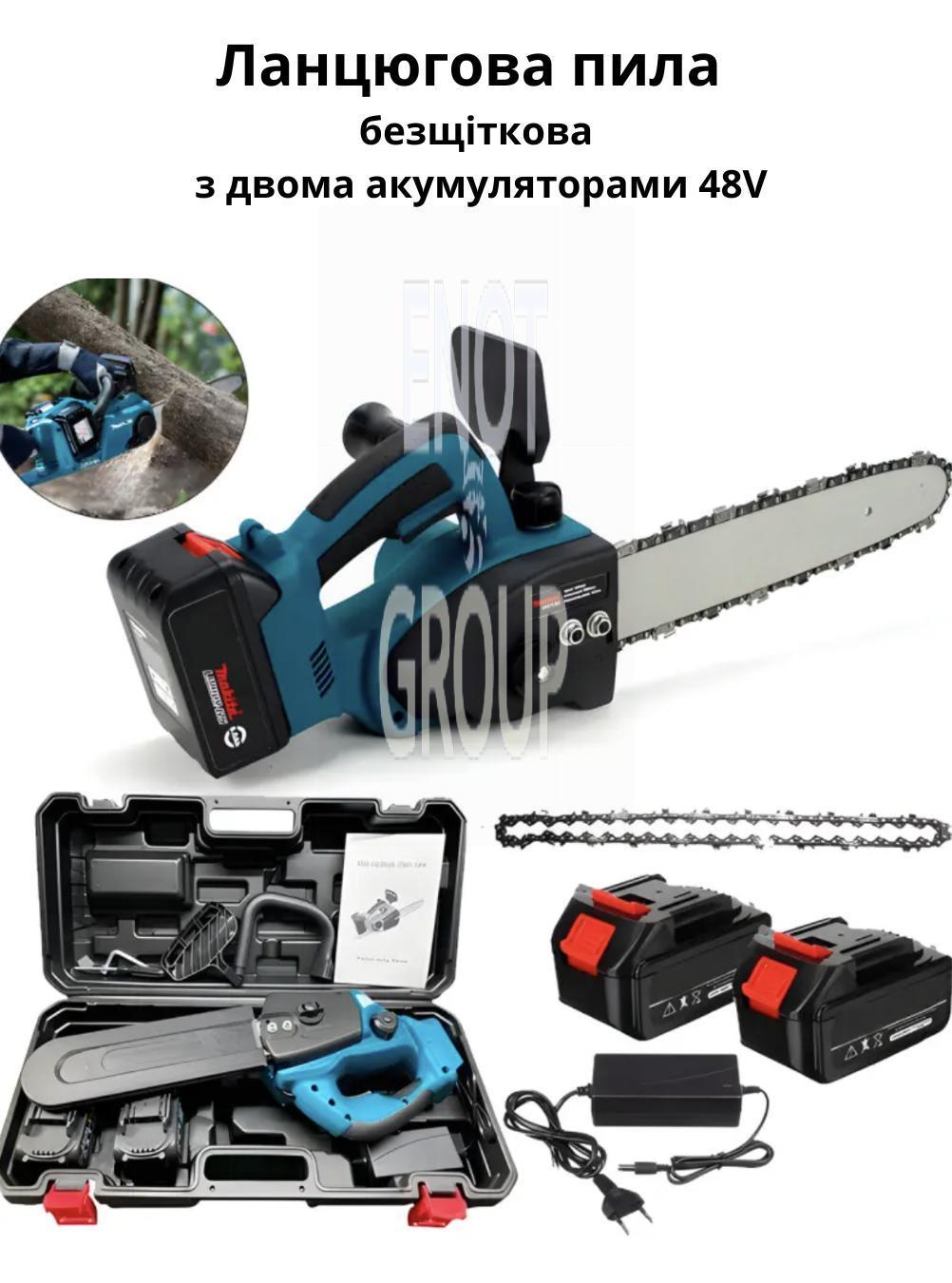 Ланцюгова пила з двома акумуляторами 48V (безщіткова) – Потужний і мобільний інструмент для ефективного різання