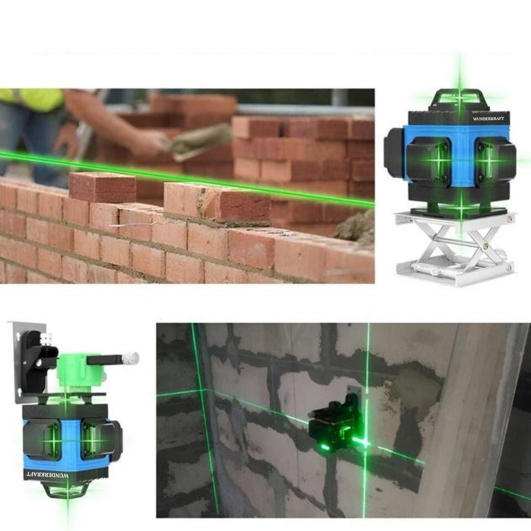 Лазерний рівень Wunderkraft 4D 16 ліній — це високоточний професійний прилад, створений для швидкого та зручного вирівнювання горизонтальних, вертикальних і діагональних площин у будівництві та ремонті. Завдяки 16 зеленим лазерним лініям пристрій формує яскраву і чітку 360° проекцію, що дозволяє контролювати простір одночасно з усіх сторін.