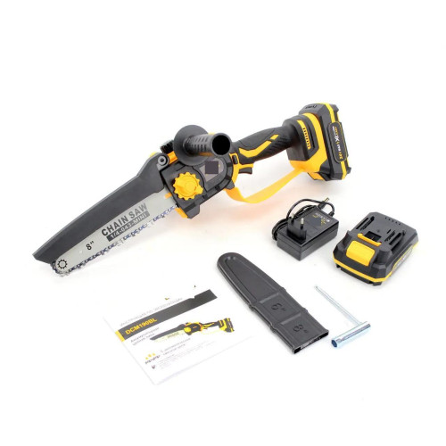 - Легка та маневрена: Завдяки своїм компактним розмірам та невеликій вазі, міні-пила ідеально підходить для роботи в обмежених просторах.