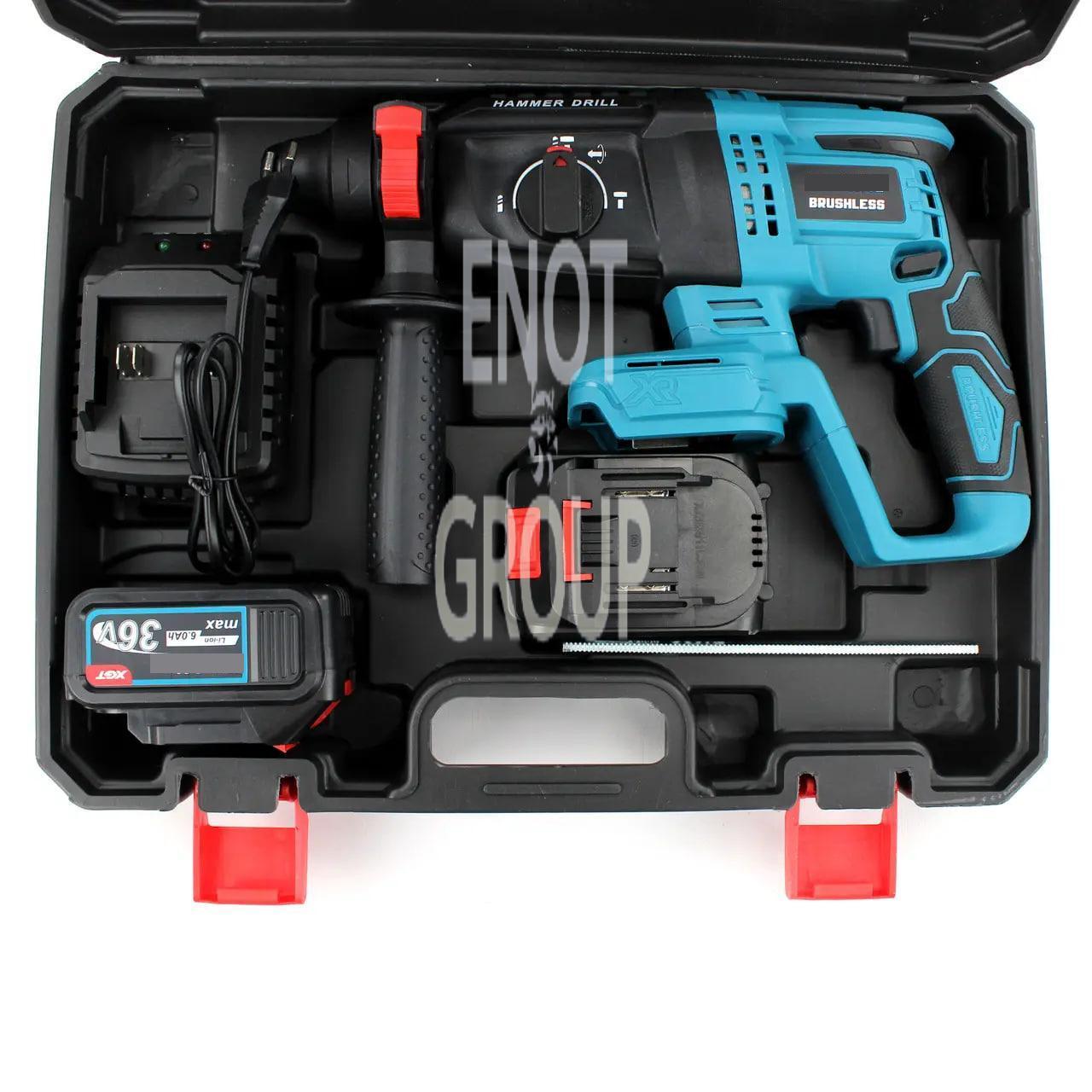 Акумуляторний перфоратор Instrumentop DHR202 (36V, 6Ah) — потужний та ефективний інструмент для роботи з бетоном, цеглою та іншими твердими матеріалами. Завдяки акумулятору 36V високої ємності, перфоратор забезпечує довгу автономну роботу і стабільну продуктивність. Ідеально підходить для професіоналів завдяки трьом режимам роботи: свердління, свердління з ударом і довбання. Ергономічний корпус з антивібраційною системою знижує навантаження на руки, а міцний кейс забезпечує зручне транспортування та зберігання.