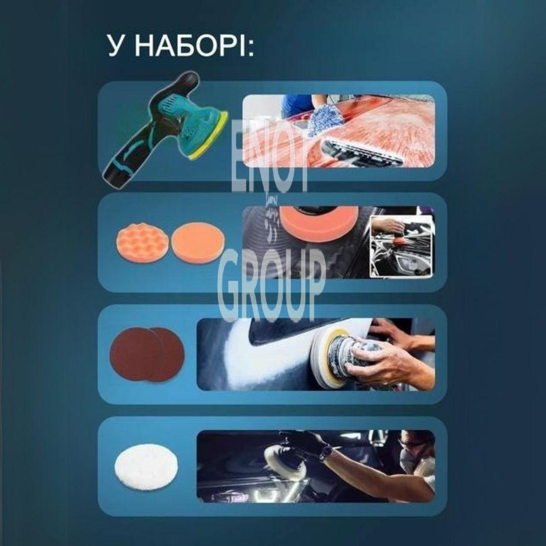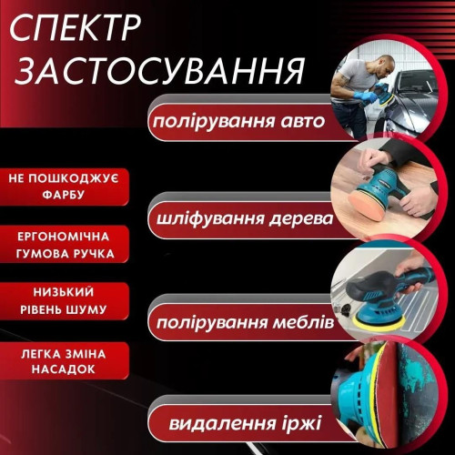 Акумуляторна машинка для полірування дозволяє легко усувати подряпини, полірувати кузов авто та наводити блиск без використання кабелів.
