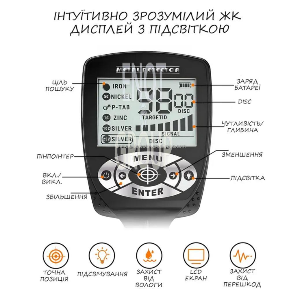 - Ідеальний для пошуку монет, артефактів та інших металевих предметів.