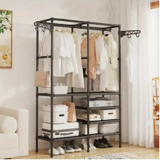 FlexWardrobe XL — це мобільна текстильна шафа з міцним металевим каркасом, просторими полицями та зручними вішалками для верхнього й повсякденного одягу. Ідеально підходить для спальні, гардеробної, дачі чи орендованого житла.