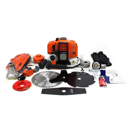 - Підтримка різноманітних насадок: ніж, ліска, фреза