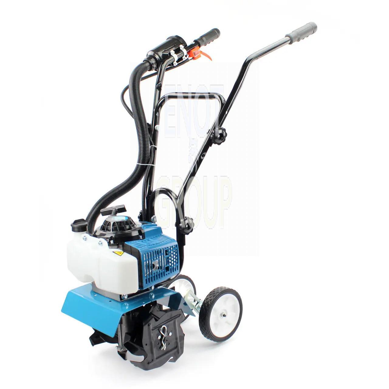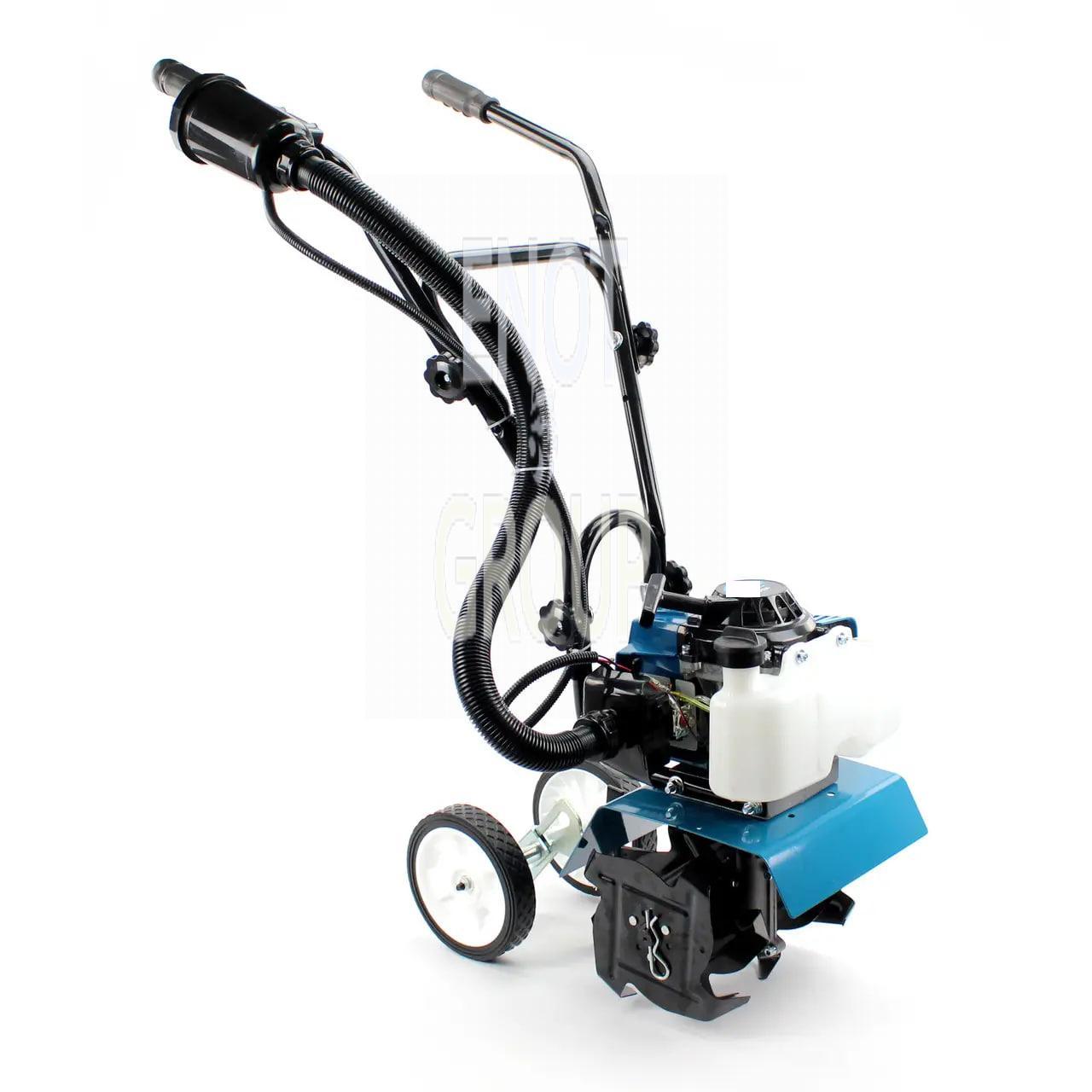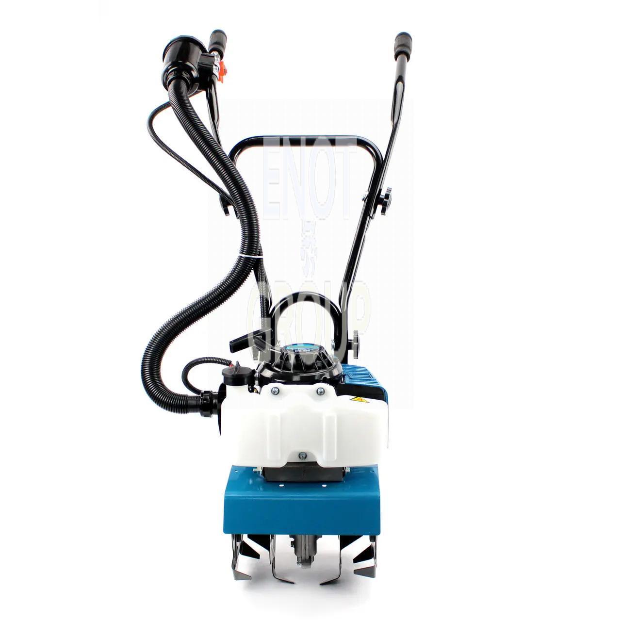 Оснащений потужним 2-тактним двигуном (5,2 кВт / 7,0 к.с.) з робочим об'ємом 62 см³, він здатний розвивати до 3200 об/хв, що забезпечує ефективне розпушування ґрунту та знищення бур'янів без пошкодження родючого шару. Хромоване покриття стінок циліндрів підвищує ресурс двигуна, а паливний бак на 1,2 л дозволяє працювати тривалий час без частих дозаправок.