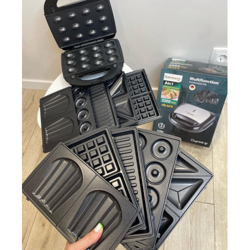Rainberg RB-2276 (6 в 1) — це багатофункціональний мультимейкер потужністю 2200 Вт, який стане вашим улюбленим помічником на кухні. Завдяки 6 змінним антипригарним насадкам, ви зможете легко готувати сендвічі, вафлі, гриль-страви, горішки, міні-пончики та печиво. Все в одному компактному та стильному пристрої!