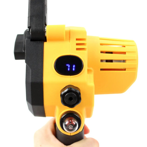 Міні-пила оснащена системою підкачування палива для легкого та швидкого подавання олії у двигун. Подача мастила здійснюється при натисканні на кнопку підкачування, що дає користувачеві контроль над кількістю поданого масла. Безключова натяжка ланцюга дозволяє швидко налаштувати напругу ланцюга без зайвих зусиль. Індикатор заряду акумулятора допомагає контролювати рівень енергії для тривалого використання інструмента.