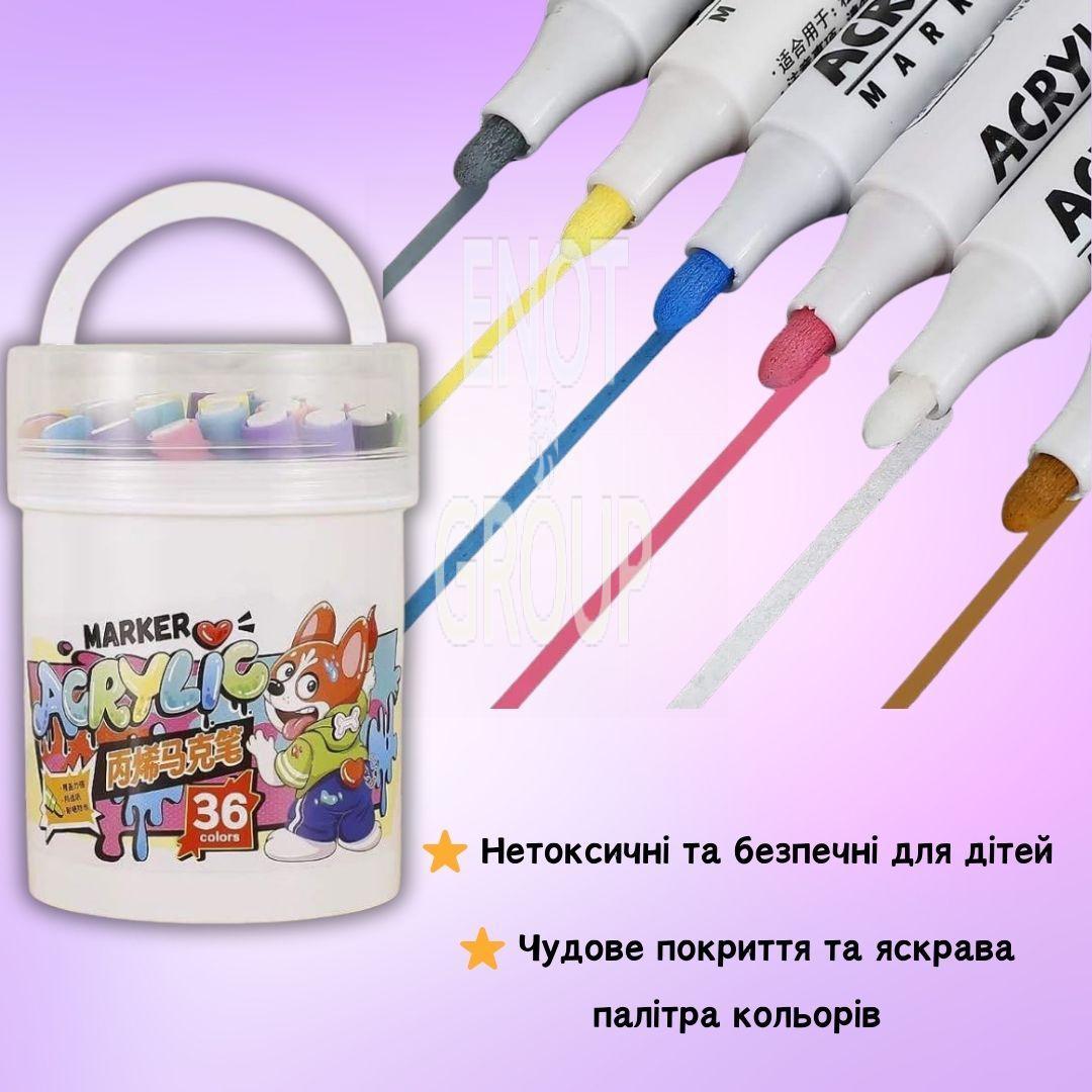 Замовляйте набір акрилових маркерів із 36 кольорів сьогодні та наповнюйте своє життя фарбами! Чудовий подарунок для вас або ваших близьких.