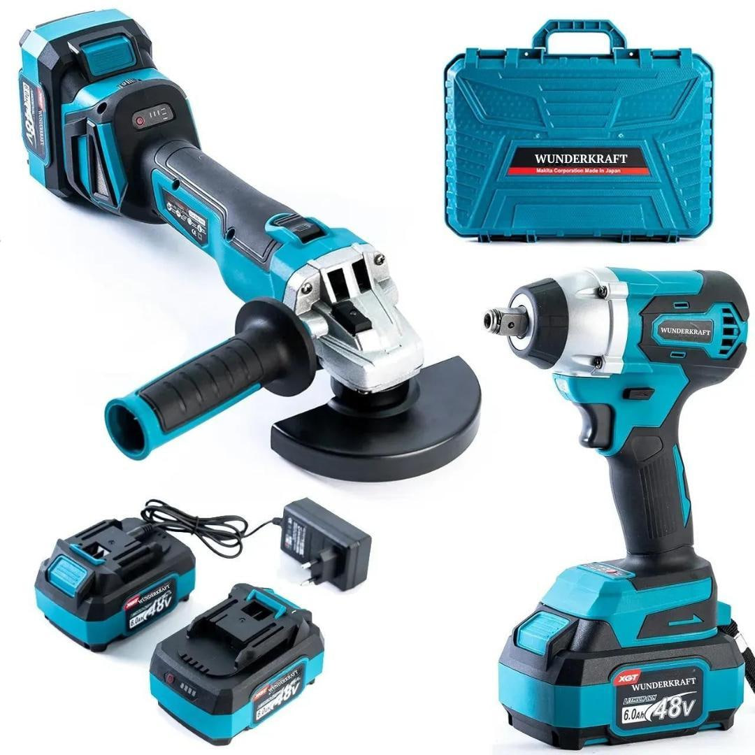 Набір акумуляторних інструментів Wunderkraft 2в1 68V ударний гайковерт і шліфувальна машинка з комплектом акумуляторів для професійного та домашнього використання