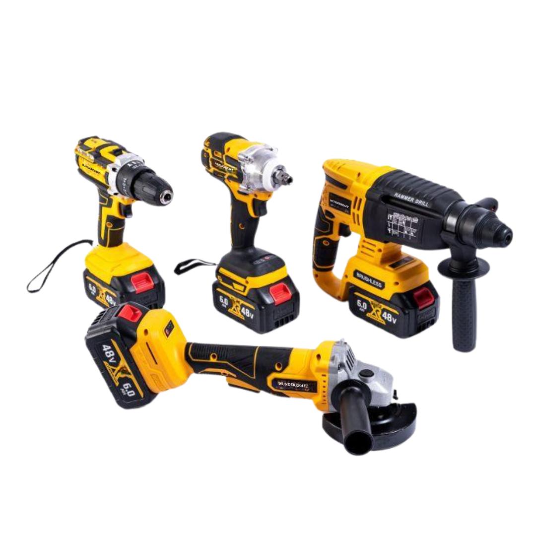 Набір акумуляторного електроінструмента 4 в 1 Wunderkraft шуруповерт, гайковерт, болгарка і перфоратор з літій-іонним акумулятором 48V 6.0Ah для дому, майстерні та будівництва