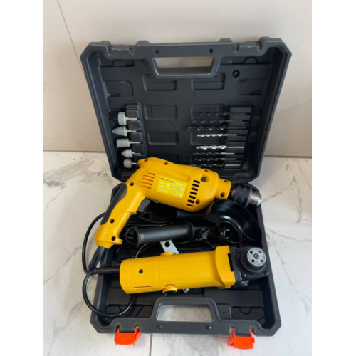 Набір електроінструментів 2в1 Жовтий потужна дриль та болгарка в кейсі, універсальний комплект для ремонту