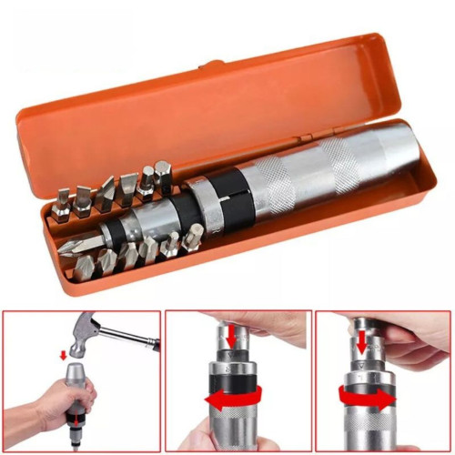 Цей набір ударних викруток створений для найскладніших завдань і чудово справляється із закручуванням або відкручуванням гвинтів і болтів, що зазнали корозії або надмірно затягнуті. Ідеальний вибір для роботи з мотоциклами, двигунами та іншими складними механізмами.