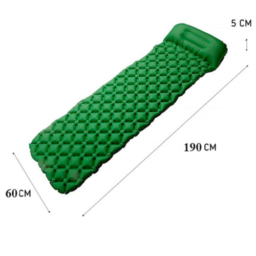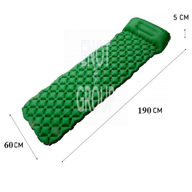Надувний туристичний килимок із подушкою 190x60x5 см зелений у чохлі