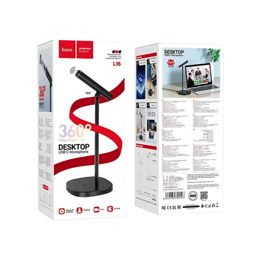 Hoco L16 Mike USB Black — це сучасний настільний мікрофон, який поєднує стильний дизайн і високоякісний звук. Він стане відмінним вибором для тих, хто працює, навчається чи розважається онлайн.