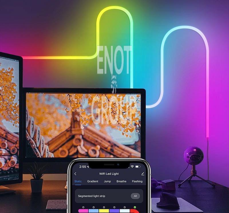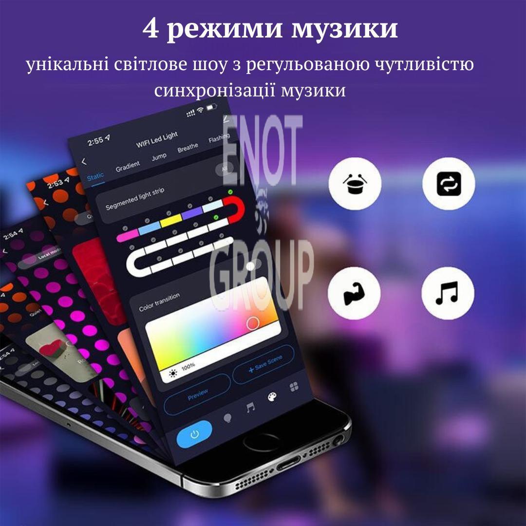 Додайте стиль та атмосферу вашому простору з настінною RGB LED стрічкою LD04. Завдяки Bluetooth з'єднанню та управлінню через мобільний додаток, ви можете змінювати кольори, режими освітлення та яскравість одним дотиком.