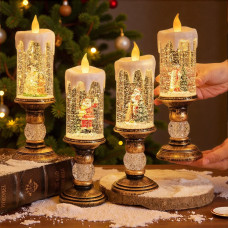 Новорічний LED-світильник-декор Свічка HC-G032 святковий світильник із ефектом снігопаду, музикою, USB та батарейками AA, настільна прикраса