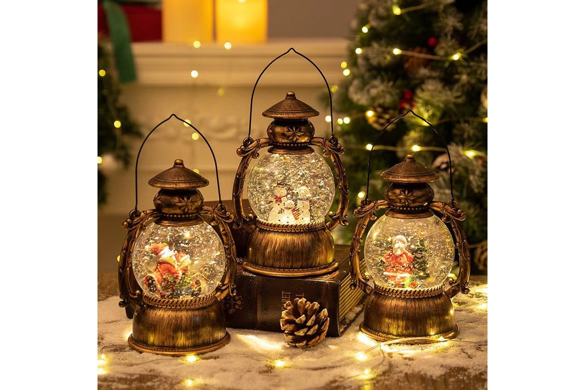 Новорічний світлодіодний декор LED Ліхтар-Поні HC-Q057 музичний святковий світильник із ефектом снігопаду, USB та батарейками AA, настільний декор