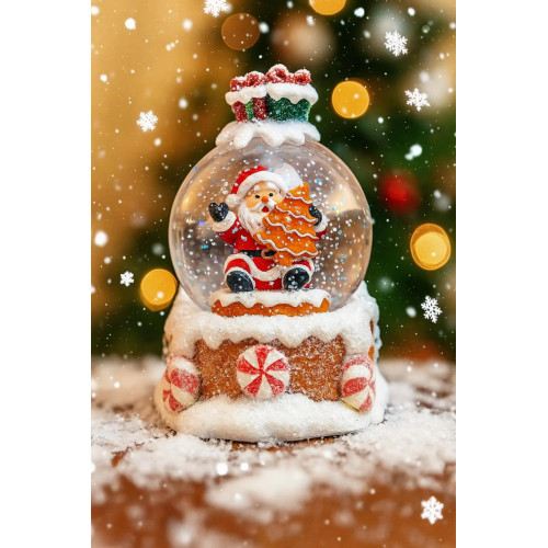 Цей казковий декор виконаний у формі світлової кулі, розміщеної на витончених санях, усередині якої оживає зимова сцена. Завдяки вбудованим LED-лампам світильник ніжно підсвічує фігурки, створюючи ефект падаючого снігу, що обертається у світлі м’якого сяйва.