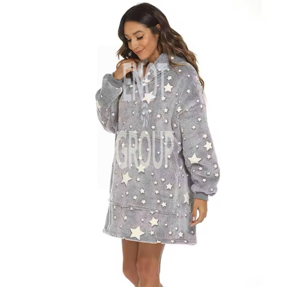 Станьте власником унікальної толстовки-пледа Stars Dream, яка об’єднує у собі тепло пледа та зручність худі. А його здатність світитися у темряві додасть магії у ваші зимові вечори.