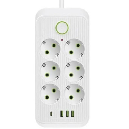 Подовжувач із 6 розетками та 3 USB, 2500 Вт, кабель 5 м