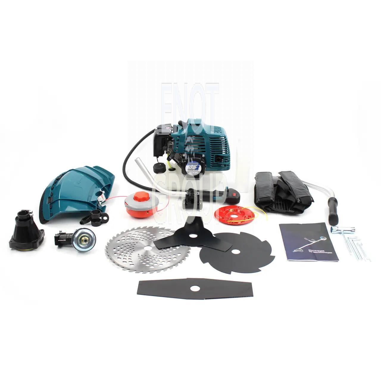 Двигун мотокоси – двотактний, з запасом потужності 5,2 кВт, що дозволяє працювати на максимальних обертах до 11 000 об/хв. Відцентрова муфта зчеплення забезпечує стабільність роботи та довговічність механізму. Посилений шатун і кований вал гарантують тривалий термін служби пристрою. Для зручності оператора передбачена антивібраційна система та комфортні плечові ремені, що рівномірно розподіляють навантаження.