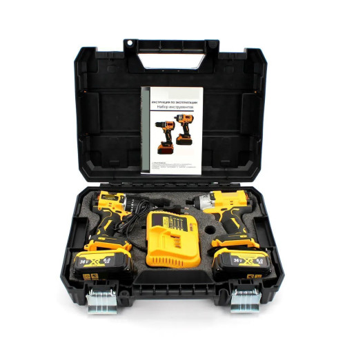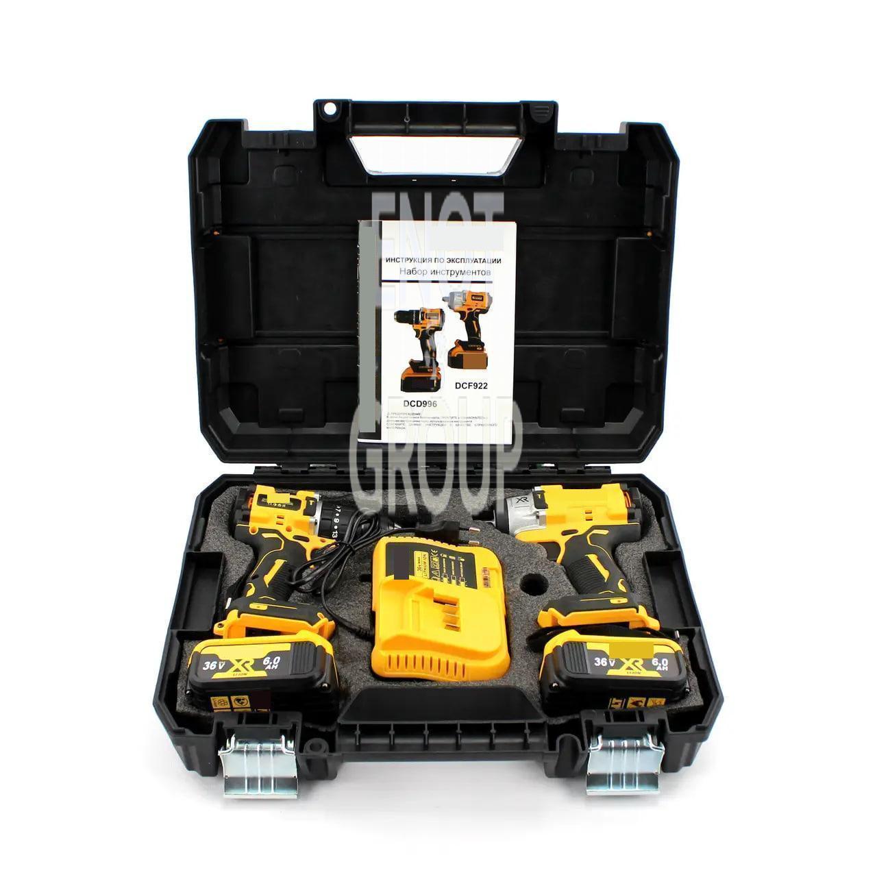 Набір інструментів Instrumentop 36V 2в1, що складається з гайковерта DCF922 та шуруповерта DCD996, є ідеальним вибором для виконання різноманітних завдань. Потужний акумулятор 36V забезпечує високу ефективність та мобільність, а інструменти підходять як для професійного використання, так і для побутових потреб. Гайковерт і шуруповерт мають унікальні функції для точного виконання роботи: гайковерт забезпечує високий крутний момент для кріплення, а шуруповерт — можливість свердління та регулювання швидкості.