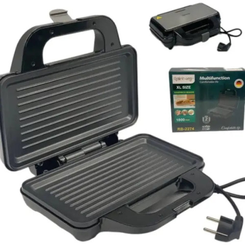 Rainberg RB-2274 — це надійний і потужний притискний гриль 1800 Вт, який допоможе приготувати соковиті стейки, рибу, овочі та гарячі сендвічі за лічені хвилини. Ідеальний вибір для поціновувачів здорового харчування без зайвого жиру!
