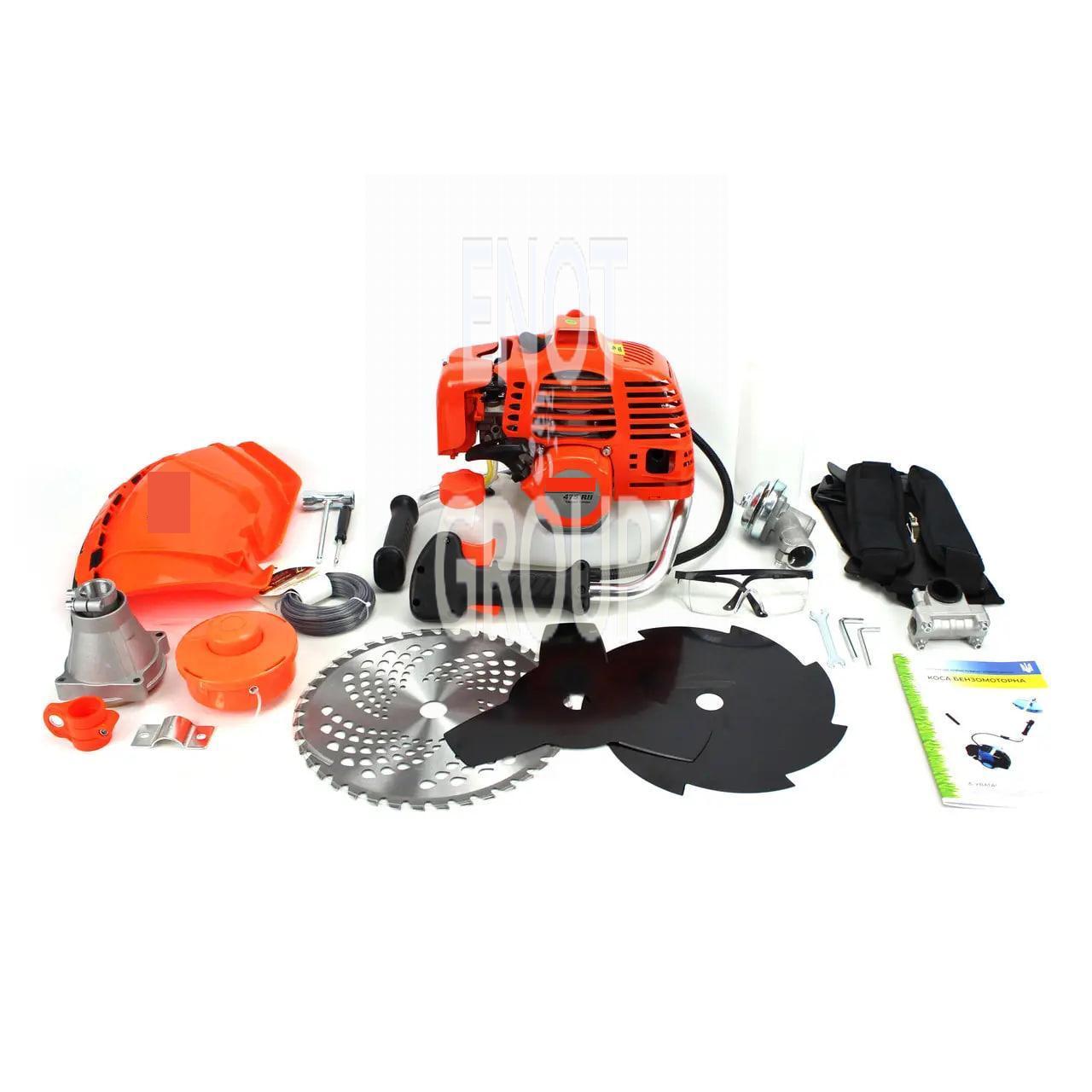 - Посилена поршнева група та хромований циліндр збільшують надійність та довговічність мотокоси.