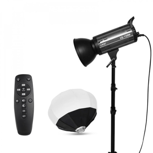 Комплект студійного освітлення LED LQ-150 200W – це готове рішення для створення якісного світла у фото- та відеозйомці. У комплект входить сферичний Soft Box, потужний LED прожектор із колірною температурою 5600K та регульований штатив. Soft Box забезпечує рівномірне розсіювання світла, усуває тіні та небажані відблиски, роблячи кадри м’якими та природними.