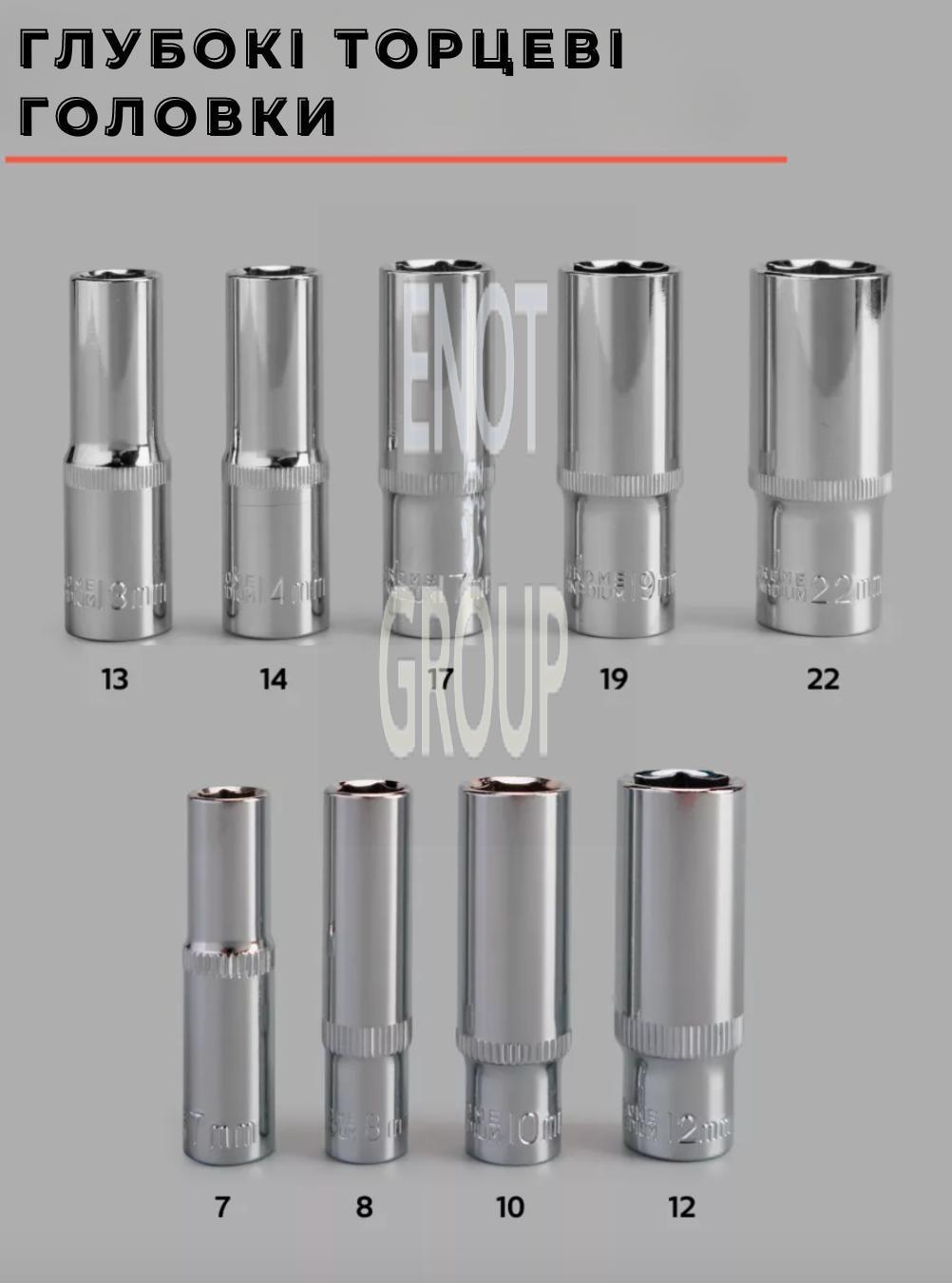 - 4300М головка торцева довга 1/2" 16, 17, 18, 19, 22 мм