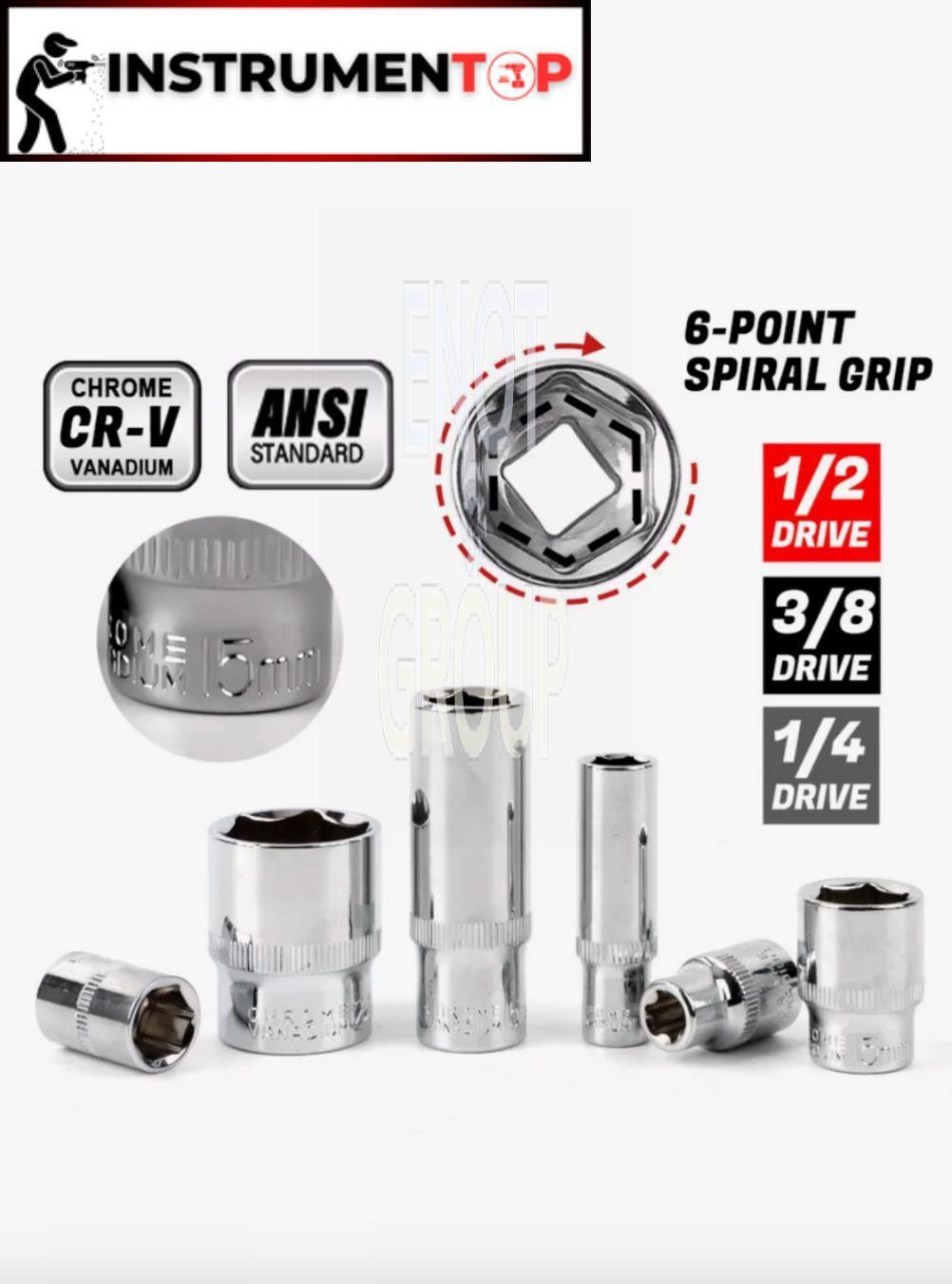 - Глубокие головки 3/8": 10, 11, 12, 13, 14, 15, 16, 17, 18, 19 мм;