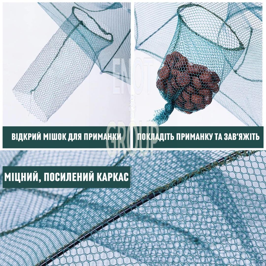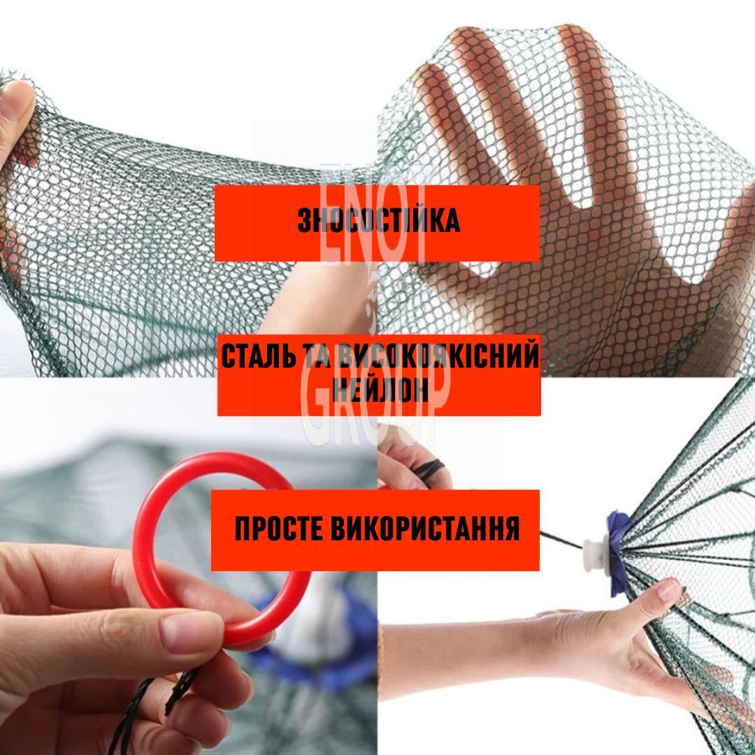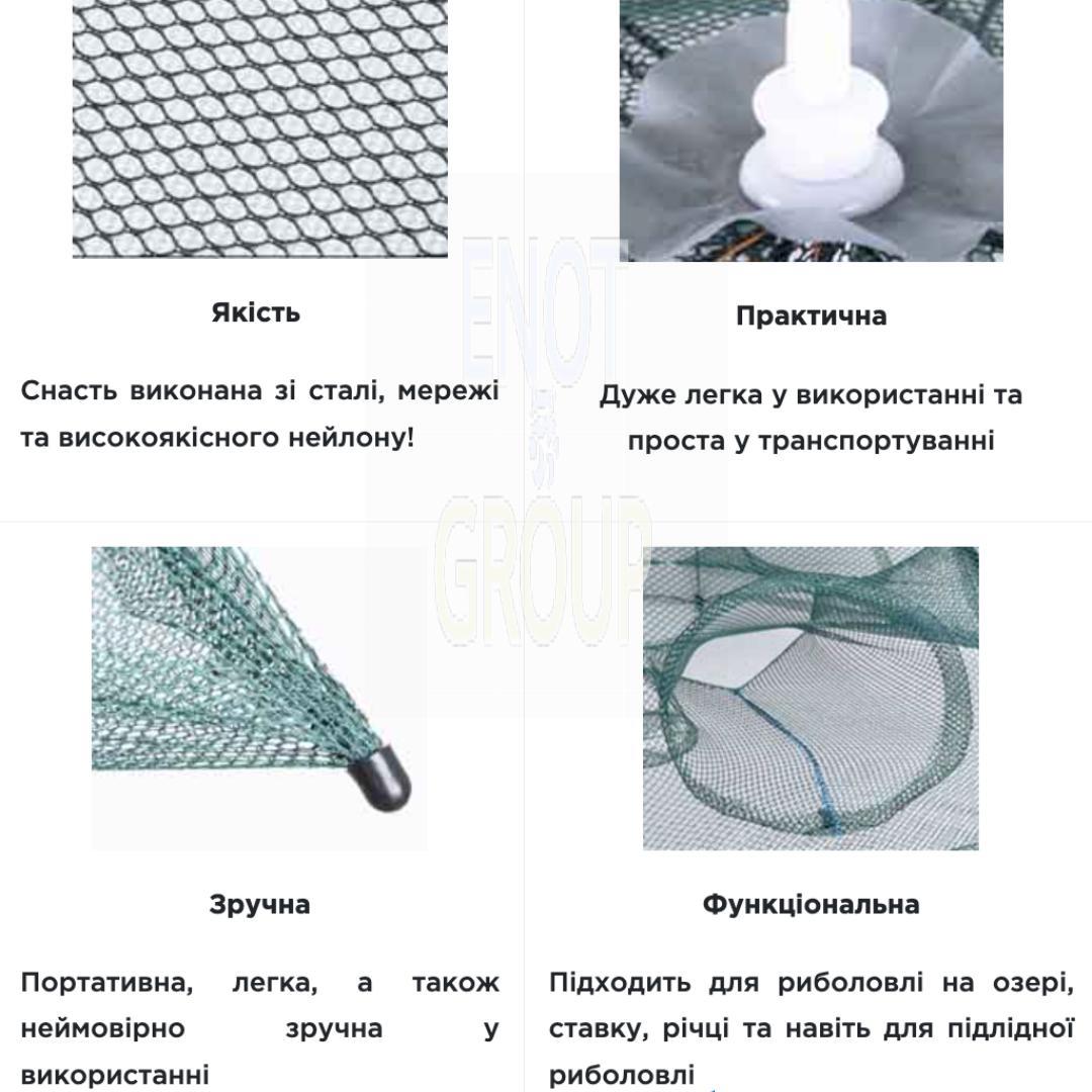 Ця сітка допоможе вам легко та швидко організувати успішну риболовлю чи вилов раків. Відмінний варіант для тих, хто цінує якість та ефективність.