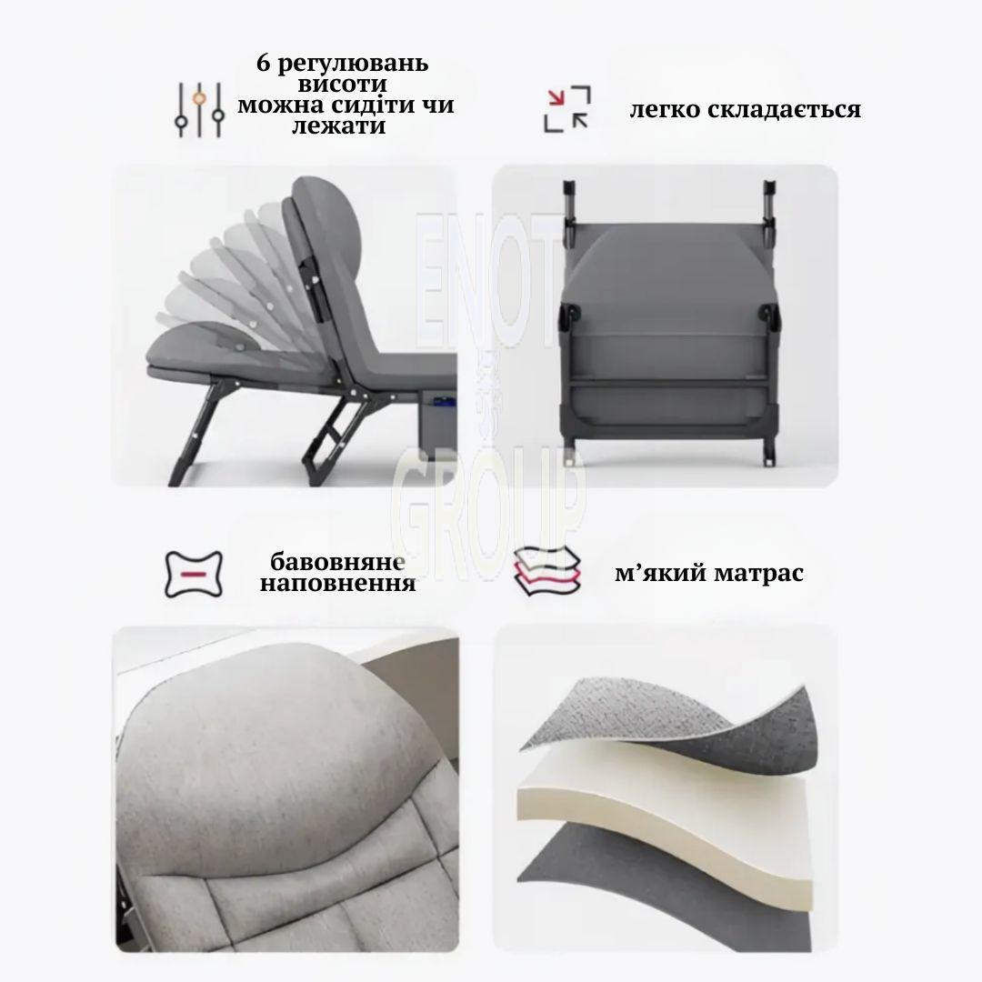 Якщо ви шукаєте надійне та компактне ліжко, яке можна швидко розкласти та скласти, цей варіант ідеально вам підійде. Розкладне ліжко з ніжками має міцну металеву основу, стійку конструкцію та оптимальні розміри для комфортного відпочинку.