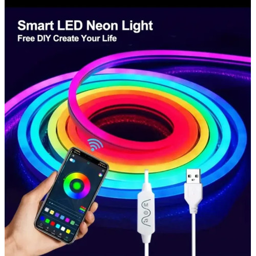 Розумна LED Neon RGB стрічка-шланг 2 м гнучка неонова лента з USB, управлінням через Bluetooth-додаток і пульт, кольори та режими світла