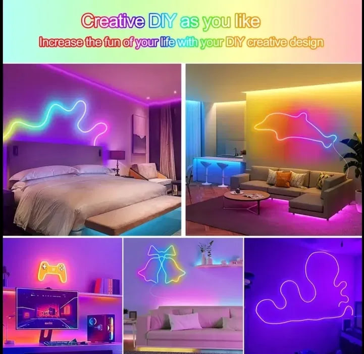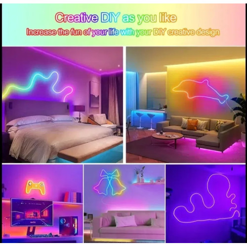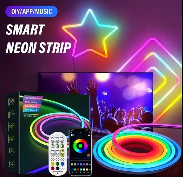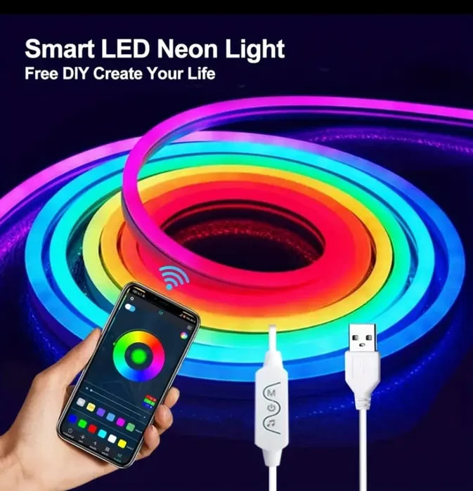 Створіть яскраву і стильну атмосферу вдома, в офісі чи автомобілі з гнучкою LED Neon RGB стрічкою 2 метри. Завдяки Bluetooth-керуванню через смартфон або зручному пульту, ви можете міняти кольори, налаштовувати світлові ефекти та керувати яскравістю, підлаштовуючи освітлення під свій настрій.