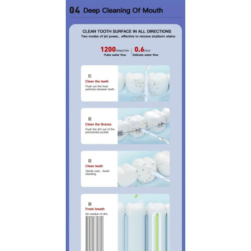 Ідеально підходить для людей, які носять брекети, мають імпланти, або просто дбають про гігієну рота. Завдяки компактному дизайну, XY09 легко вміщується в сумку або рюкзак, що робить його чудовим вибором для подорожей, відряджень або офісу.