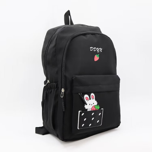 У конструкції передбачено два великі відділення для книжок, зошитів чи ноутбука, передню кишеню для дрібниць та дві бічні кишені на резинці для пляшки з водою або інших необхідних аксесуарів.