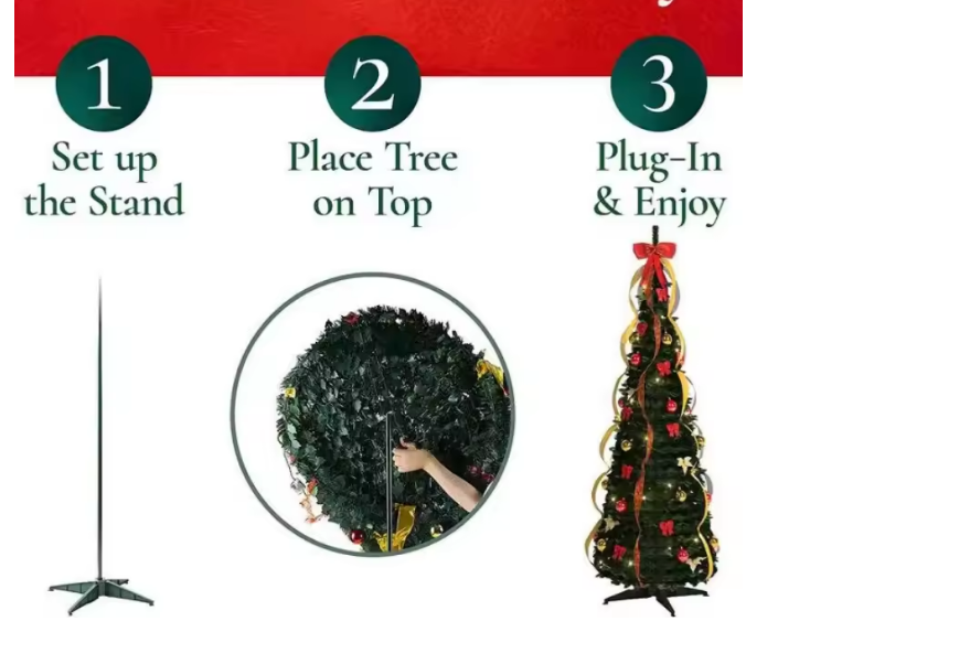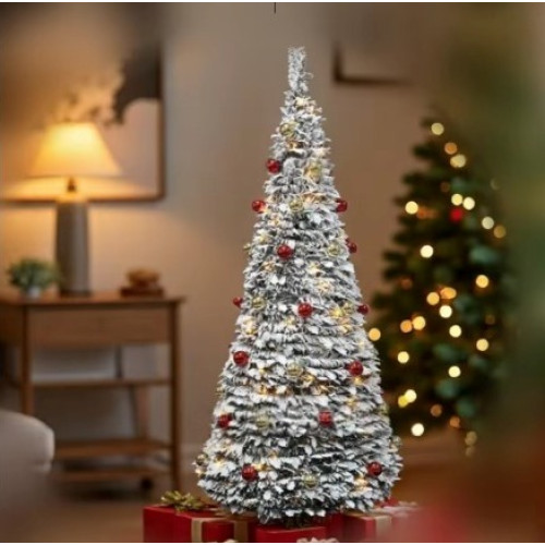 Зустрічайте свята стильно та без клопотів разом із розкладною різдвяною ялинкою висотою 195 см! Ця пишна штучна ялинка вже прикрашена святковим декором, тому вам не доведеться турбуватись про підбір і розвішування іграшок — просто розкрийте конструкцію, зафіксуйте на стійкій підставці й насолоджуйтеся чарівною атмосферою Різдва та Нового року.