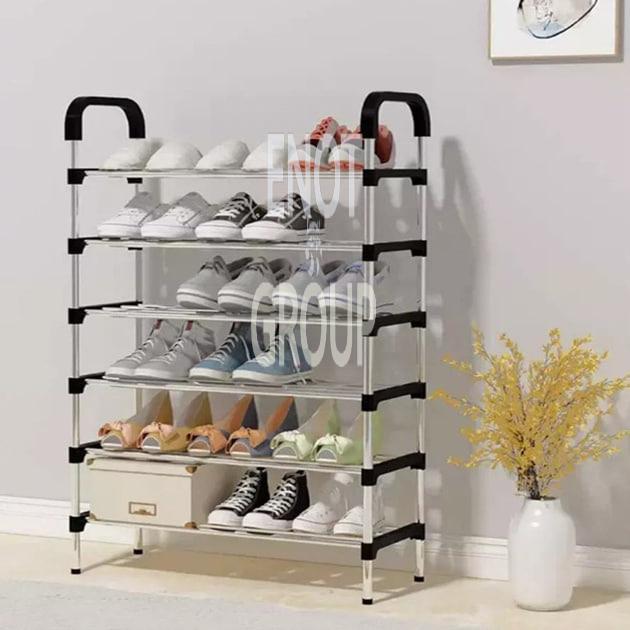 Полиця для взуття Shoe Rack 6 полок (8068), чорна – стильне та функціональне рішення для зберігання взуття. Завдяки 6 полицям вона допоможе організувати простір і підтримувати порядок у прихожій, гардеробній або будь-якому іншому приміщенні.