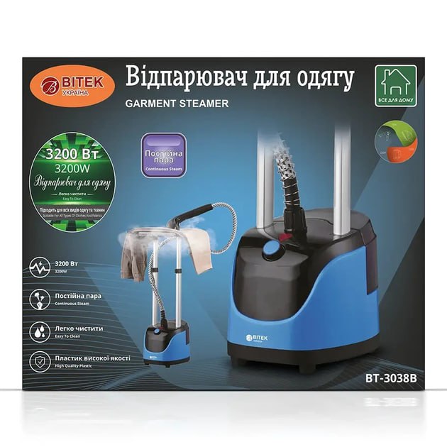 Вертикальна парова система BITEK BT-3037 — 3600 Вт відпарювач + свіжість одягу