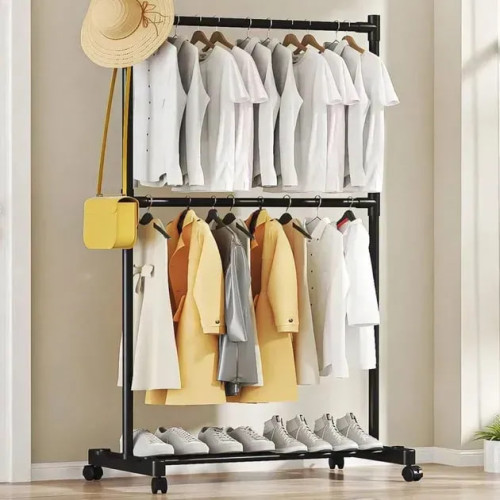 Ця напольна вішалка для одягу — ідеальне рішення для підтримки порядку в будь-якому приміщенні. Вона гармонійно поєднує функціональність і стиль, підходить для передпокою, спальні, гардеробної чи офісу. Міцний металевий каркас та практичний дизайн вішалки гарантують її довговічність, а стильний вигляд стане чудовим доповненням вашого інтер'єру.