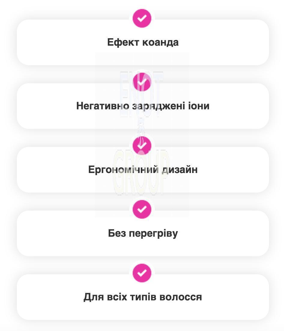 - Іонізація: Технологія зберігає природну вологу волосся, запобігає пересушуванню та пошкодженням.