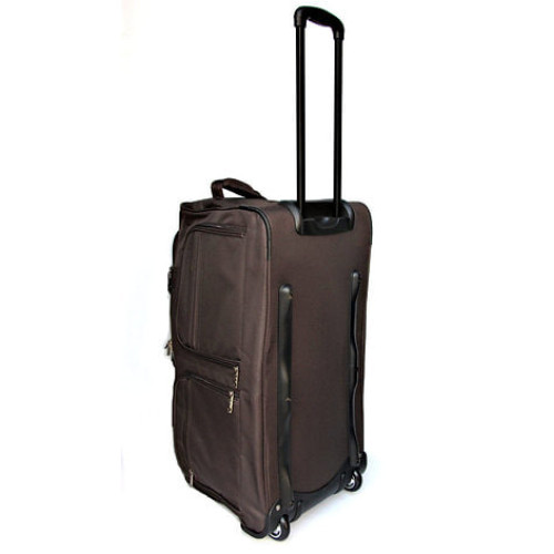 Сумка виготовлена з щільного водонепроникного поліестеру, що захищає речі від дощу, вологи та забруднень. Посилені міцні колеса забезпечують плавний рух навіть по нерівних поверхнях, а телескопічна алюмінієва ручка робить транспортування легким та зручним. Додатково передбачені дві зовнішні кишені на блискавці, де можна зберігати документи, квитки, гаджети чи інші дрібниці.