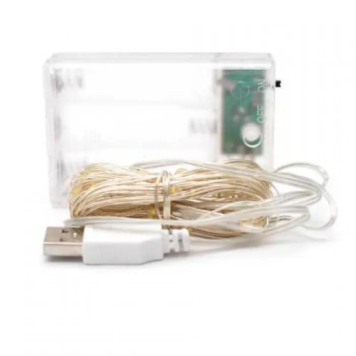 Гірлянда оснащена двома типами живлення: батарейки (3×AA, не входять у комплект) та USB, що робить її максимально зручною та мобільною. 200 LED забезпечують яскраве, рівномірне світло, споживають мінімум енергії та не нагріваються, що гарантує безпечне та довготривале використання.
